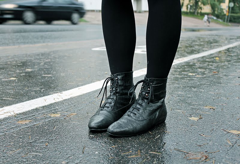 Lopetan kenkiin. Ne ovat rakkaat ja paljon nähneet. Löysin nämä joskus joltain Kouvolan kirpputorilta, siitä on varmaan neljä vuotta. Silloin minulle naurettiin ja sanottiin, että olen vienyt Pikku Myyn kengät. Mutta enhän minä nyt toisten omaisuutta. Ja kun reilu vuosi sitten opin lankkaamaan kenkiä, niin siitä lähtien nämä kyseiset yksilöt ovat saaneet aivan spesiaali-kohtelua. Kestävät tuulen ja tuiskeen.