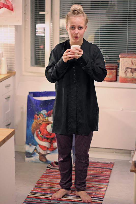Lilli: Nauroin ääneen, iha huikea. Ne on kyllä aina sellaisia että vyötärö ylettyy tissien alle ja nilkat jää paljaaksi, tai ehkä jotakin pitsinjämää voi ylettyä sinne. Pitää kai turvautua talvella sukkiksiin.
