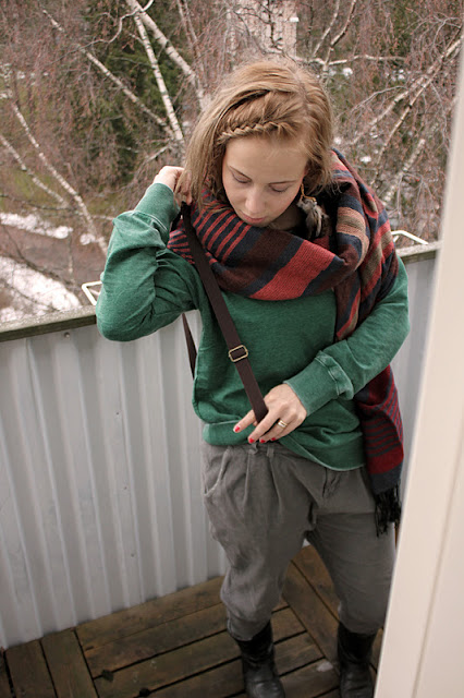 Ulkovaatteisiin otin saman linjan: löysää ja kasaria. Ystäväni Villen vanha takki ja pikkusiskoni vanhat sniikkerit, jotka taannoin ostettiin Budapestin reissusta. Kyllä näillä kelpaa kaduilla tanssia!