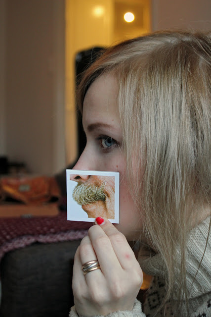 Saimme häälahjaksi kesällä pitkän haaveilumme jälkeen Mustaschmemon -hervottovan viiksimuistipelin. Muistipelithän on iha mielettömiä, eikö vaan? Tiedän, että viikset on so-last-season tai ainaki so-last-month, kun Movemberkin meni. Mutta minä se tykkään viiksistä, vaikka itselläni ei kasva kuin maitoviikset. Saan niistä kuitenkin pelin tiimellyksessä haaveilla.