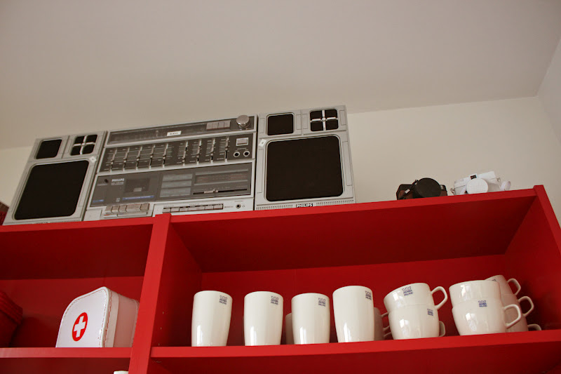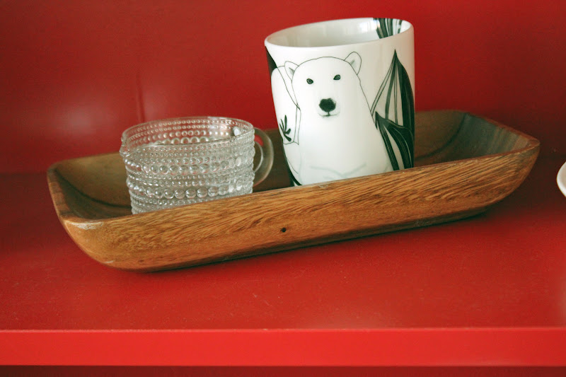 On ihana kun ihmiset uskaltaa välllä käyttää myös väriä. Rakastan tuota keittiön punaista hyllyä!