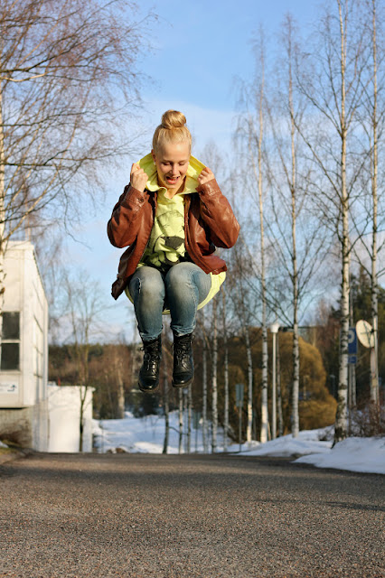 Bussikuski kyseli, ollaanko menossa juhlimaan, takana kävelevät mummot totesivat, että paljaista sääristä päätellen on talven selkä tainnut taittua. Sitäkin hauskempaa oli kuitenkin se, että muutaman vuoden ikäinen pikkuinen tyttö kertoi tomerasti äidilleen pysäkillä, että vieressä seisovilla tytöillä ei ole housuja jalassa. Suvilahteen kuitenkin päädyttiin onnistuneesti ja portsari päästi meidän vielä sisäänkin.