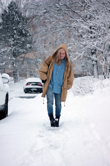 Mitä tarkoittaa takatalvi? Tietenkin sitä, että vaatteiden kangasmäärä kasvaa taas telttamittoihin. Että vaatteiden koko lähenee taas isojen miesten mittoja, että on paikka johon kääriytyä karkuun. Että vaatevalinnat saattavat olla siipan vaatekaapista ja ripsivärin on lumisateessa oltava vedenkestävää. Sitä, että aamulla avaa verhot ja karjaisee: ”mitä ihmettä!?” Sitä, että bussikuskit (jos bussit yleensäkään kulkevat) näyttävät tavallistakin enemmän hapannaamoilta.