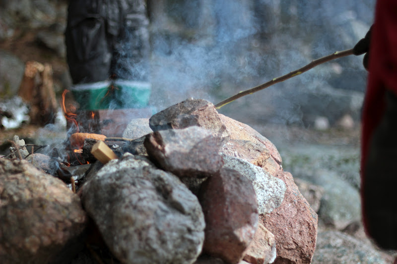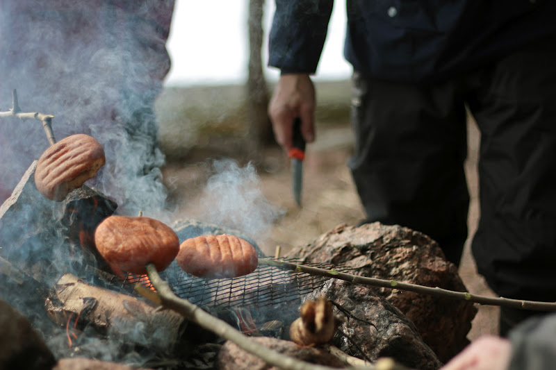 Totta kai lihistä nuotiolla! Sehän on perustemppu. Ei aina sitä iänikuista makkaraa.. vaikka sitäkin söimme. Ja niin kiitos!