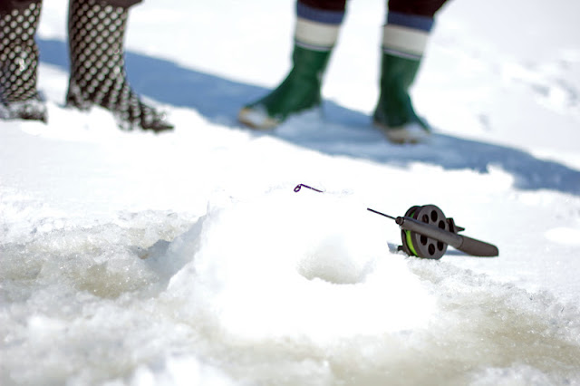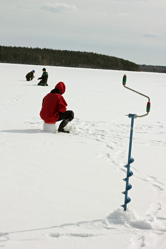 Vihdoin. On aika pilkkikuvien. Perheemme perinteinen pilkkikilpailu järjestettiin sunnuntaina, pääsiäispäivänä, Lappalan jäällä (tämä oli ensimmäinen kerta kun tämä kisa järjestettiin, sinänsä huvittavaa että sitä kutsuttiin ”perinteiseksi”). Olohuoneen lattialle levitettiin pilkit ja siinä niitä sitten jaettiin. Isä levitti vieheet/uistimet/mitkälie sanomalehtipaperien päälle ja minä vähän vähemmän kokeneena kalamiehenä yritin valita sieltä pätevimmän. Sen verran onnistuin, etten valinnut korvista tai kynsileikkuria, jotka isä oli hämäyksen vuoksi laittanut mukaan.