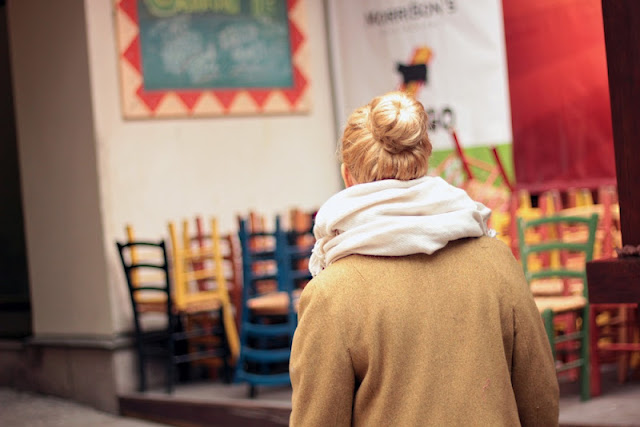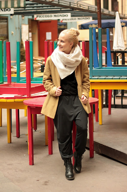 huivi, kaulakoru/Cubus, pitsihaalari/Vero Moda, kengät, takki, neule/kirppis