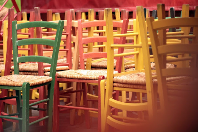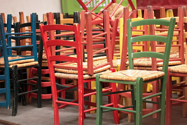 Olisin viennyt kaikki noita tuoleja ja pöytiä mukaan, niin ihanan värisiä ne on :9