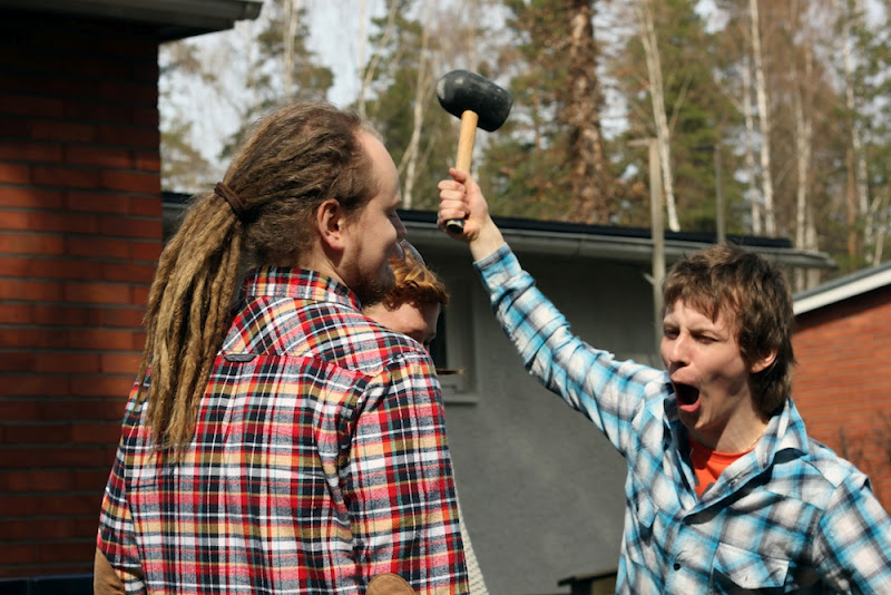 Mutta hyväne aika, kyllähän vappuhippoihin ystävätkin kuuluvat. Kaikki ihanat saapuivat taloamme täyttämään, tai oikeastaan mökkiämme, sillä valtasimme sen. Taisi äitin ja isän helmoissakin kuitenkin pyöriä sekä veikka- että siskokullan kavereita. Mutta niin mökin kuin lapsuudentalonkin nurkat täyttyivät naurusta ja höpöttelystä. Koetin saada ituhippi-kuomasiani ikuistettua isäni virittelemän aurinkopaneelin edessä, mutta eihän siitä mitään tullut. Jotenkin ituhippi-aurinkopaaneli olisi vain ollut niin onnistunut yhdistelmä.