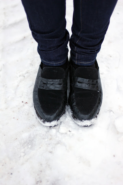 Ensimmäiset kunnon talvikuvat tältä talvelta, ablodit sille. Asu ei tosin ole kovin viimalta suojaava, sillä jätin kuvaustuokion koittaessa varsinaisen takin tien sivuun. Näissä vaatteissa tuli himmailtua viime torstai. Ruotsin reissulta löytynyt kipparinlakki oli päässä ensi kertaa, kun suuntasin kouluun. Vasta koulumatkallani tajusin, että ensimmäiset tunnit pidetäänkin Suomenlinnassa ja sinnehän mennään lautalla. Voitte kuvitella, millaista kettuilua sain kuulla koko loppuviikon siitä, että Henriikka se pukeutuu aina teeman mukaisesti. Korniksi osoittautui lakki siinä tilanteessa, ankkurinapit vielä korostivat kokonaisuutta.