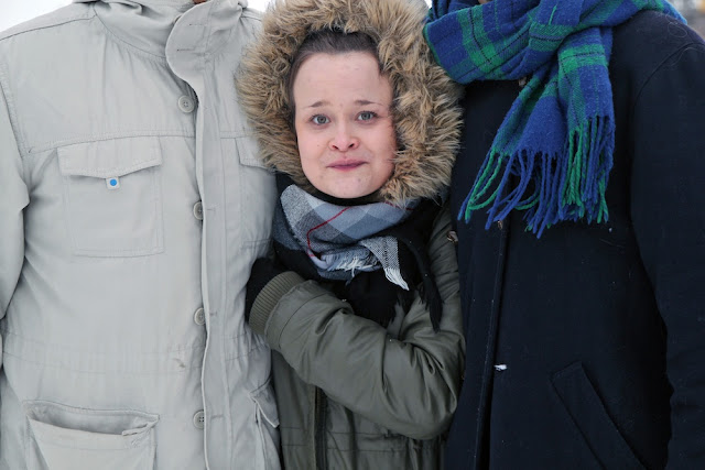 Eilisaamuna vaatekaapin edessä yritin löytää päälleni jotain vaaleanpunaista. Kovin suurta tarjontaa ei löytynyt, mutta ehkä kaikista söpöin omistamani vaate on valkoinen neule hämmentävällä ruusu-kangaskuviolla. Kovalla raivolla ja yrittämisellä sain hiukseni kiharalle ja vähän vähemmällä vaivalla pipon päähän. Suurin kiitos kuului kuitenkin uudelle Joutsenen untuvatakille, joka piti minut totaalisen lämpimänä jääkalikka-ystävieni seurassa. Kyllä kelpasi olla ystävillä ja hanhen untuvalla ympäröity.