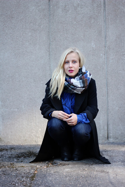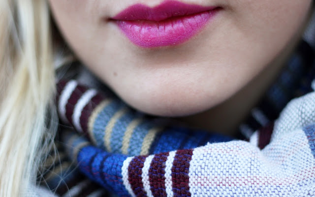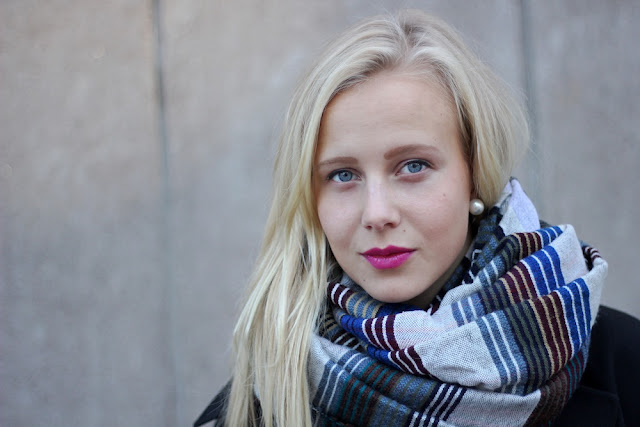 Eilinen huulipuna piristi, se täytyy myöntää. Näitä kuvia otettaessa huulipuna oli pysynyt läpi pitkän päivän ilman lisättyjä kerroksia. Sävy oli haalentunut hiukan, mutta pysynyt tiukasti. Myös sinertävät, kylmät sävyt ovat tuoneet jotain uutuudentuntua kaiken vanhan ja tylsän keskelle.