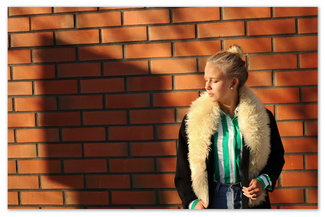 On hyvä kirjoittaa, kun ulkona merellä laulelee lokit. Ne tuo samankaltaista turvaa, kuin aurinko päivisin. Kevättakissa tarkenee jo, kunhan kaulaliina on muhkea. New Yorkista kirpputorilta löytynyt karvakaulus on omiaan Marimekon pitkän mustan takin kanssa. Kaiken alla on pystyraitainen Burberryn vintagekauluspaita, joka on tämän kevään trendien mukainen aivan vahingossa. Ei sentään pelkistetyn mustavalkoinen, sillä enhän minä mikään muodinorja ole. Erään lukijan sanoja lainaten: ”Voisit ehkä jättää tuollaisten vaatteiden kanssa tuon muoti-tunnisteen pois”. Mutta sen minä vain sanon, että muotia se on katumuotikin. Niin vaatteissa kuin sisustuksessa pätee hyvä sääntö: kun yhdistelee uutta ja vanhaa, tulee lopputuloksesta paras.