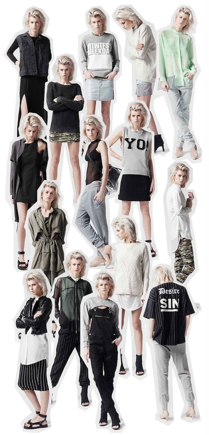 Tästä loivalla aasinsillalla menemme asiaan. Olen tyrmistyttävän ällistyttävän fileissäni Weekdayn uudesta mallistosta. MTWTFSS WEEKDAY -kevätmallisto on täynnä ihan kreisikivoja kokonaisuuksia ja vaatekappaleita. Huh huh, tällaisia inspiraation puuskia tarvitsen, että hymyilen taas vaatekaappini edessä. Ja valitettavasti yritän koko ajan selitellä itselleni, että tarvitsen myös mahdollisesti muutaman uuden vaatekappaleen.
