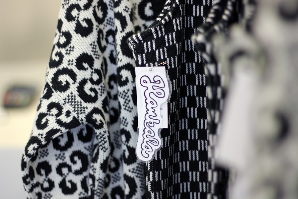 Nielin pettymykseni, yritin muka kiitellä itseäni rahansäästöstä ja keskityin putiikin muihin tuotteisiin. Onneksi OVVN:llä tarjontaa riittää. Kaupan sisältö koostuu 10 nuoren suunnittelijan tuotteista ja tarjolla on uniikkeja vaatteita ja asusteita. Hypistelin ja ihastelin. Haldinin mustavalkoinen apinakuosi kutkutteli kesäksi ja Hankala näytti hyvältä mustavalkoisissa villa-asioissa. Myyjä oli mukava ja perjantaitunnelma korkealla.