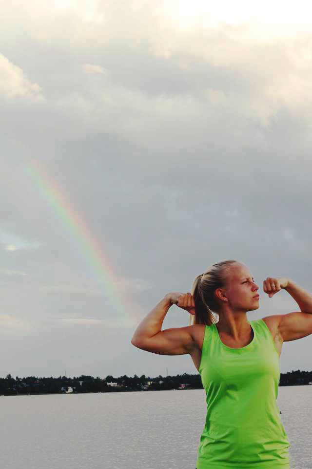 Tuntui, etten pariin viikkoon ole muuta tehnytkään kuin juossut. Lauantaina juoksin viimeistä lenkkiäni niin kyllästyneenä lenkkareihini, että oksetti. But I did it. Ja saan kutsua itseäni mestariksi, ainakin viikon verran. Taivaalle nousi kaiken päätteeksi sateenkaari, ja uskottelin luonnonvoimien olevan puolellani. Ei kipuu, ei hyötyy. Ei duunii, ei tuloksii.