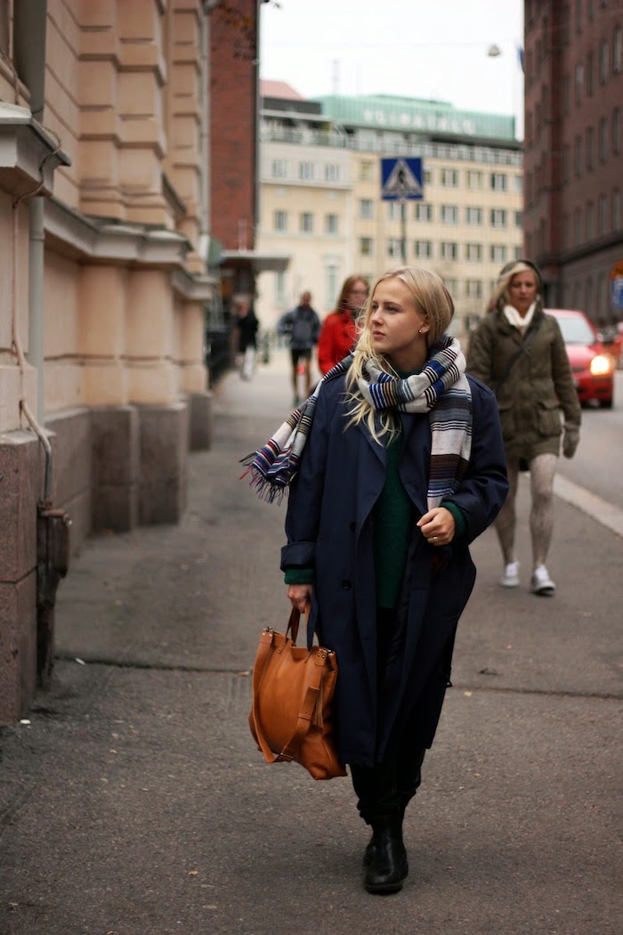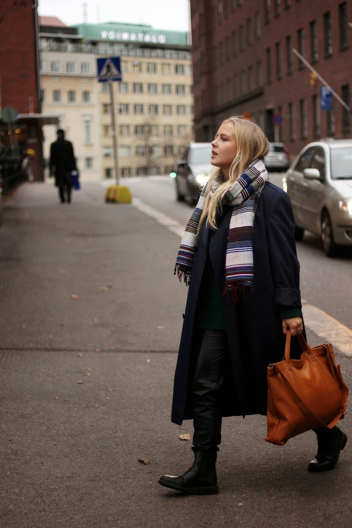 Mutta kun hommaan sekoittaa uutta ja vanhaa, ei kokonaisuudesta tule puli. Koko asu lähti oikeastaan tarpeesta kääriä itsensä tuuliseen päivään mahdollisimman suureen määrään kangasta. Takin lisäksi löytyi villapaitaa ja huivia, jotka kaikki rennosti roikkuivat mukana.